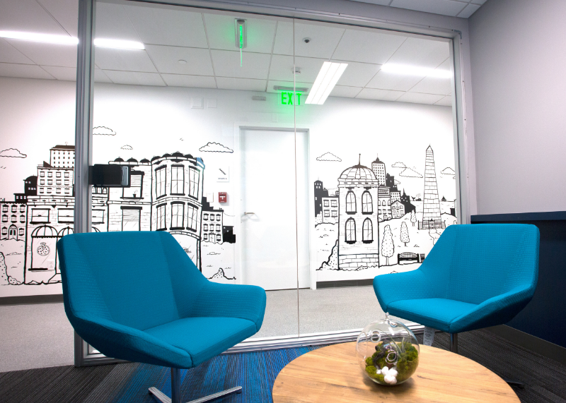 We were hired by Placester to create a street scene which lines the hallways in their brand new 30,000 sq.ft office space located at 100 High Street in the financial district. The office has been featured in multiple websites.